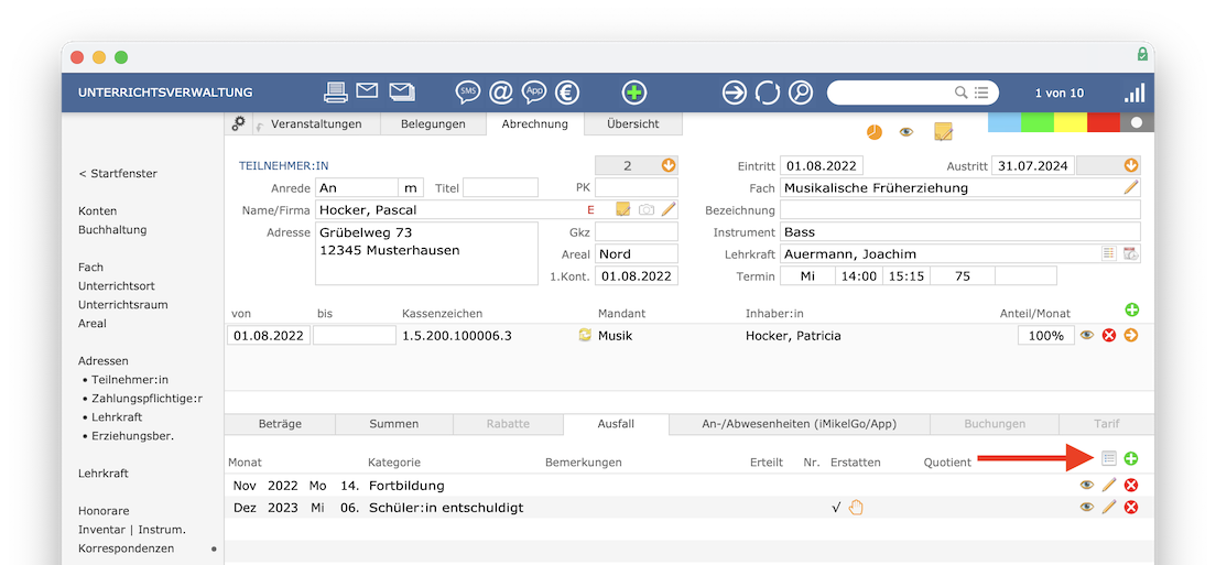 Unter Unterricht > Abrechnung > Ausfall